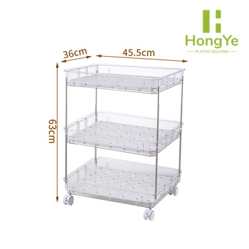 Este organizador de almacenamiento transparente con ruedas de 3 niveles es una herramienta de organización práctica y adaptable diseñada para mantener los artículos del hogar ordenados. Su diseño transparente ofrece una apariencia limpia y ordenada...
