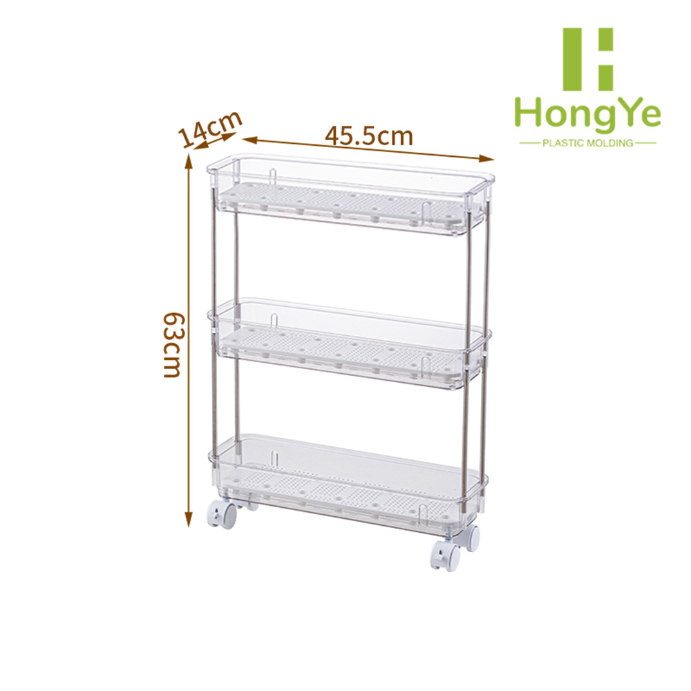 Este organizador de almacenamiento con ruedas delgado y transparente de 3 niveles es una solución organizativa elegante y práctica diseñada para maximizar la eficiencia del espacio y al mismo tiempo mantener los artículos ordenados.